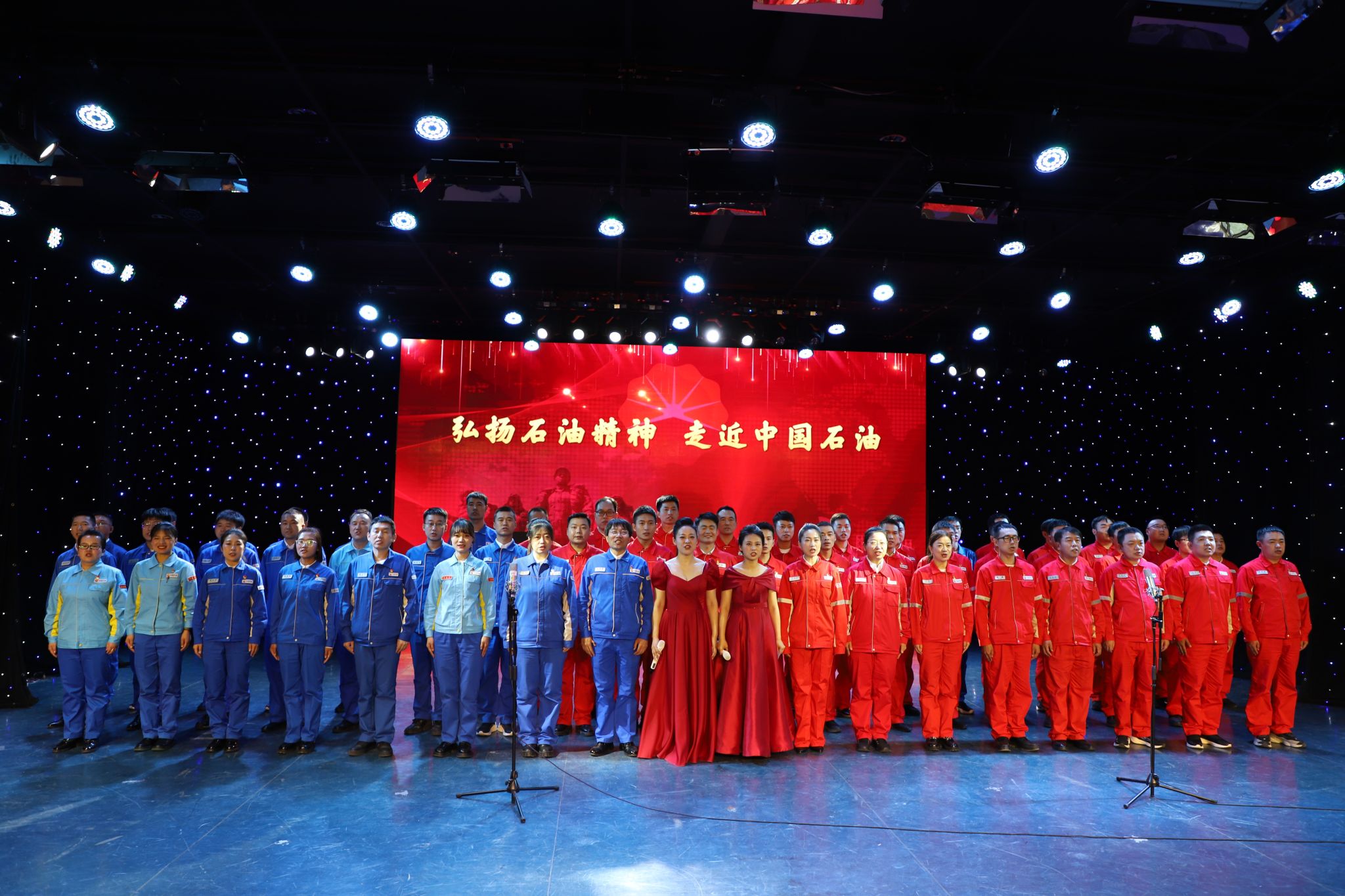 “弘扬石油精神 走近中国石油”主题晚会节目丰富多彩,涵盖石油精神宣讲、歌舞表演、情景剧、大合唱等十四项节目。