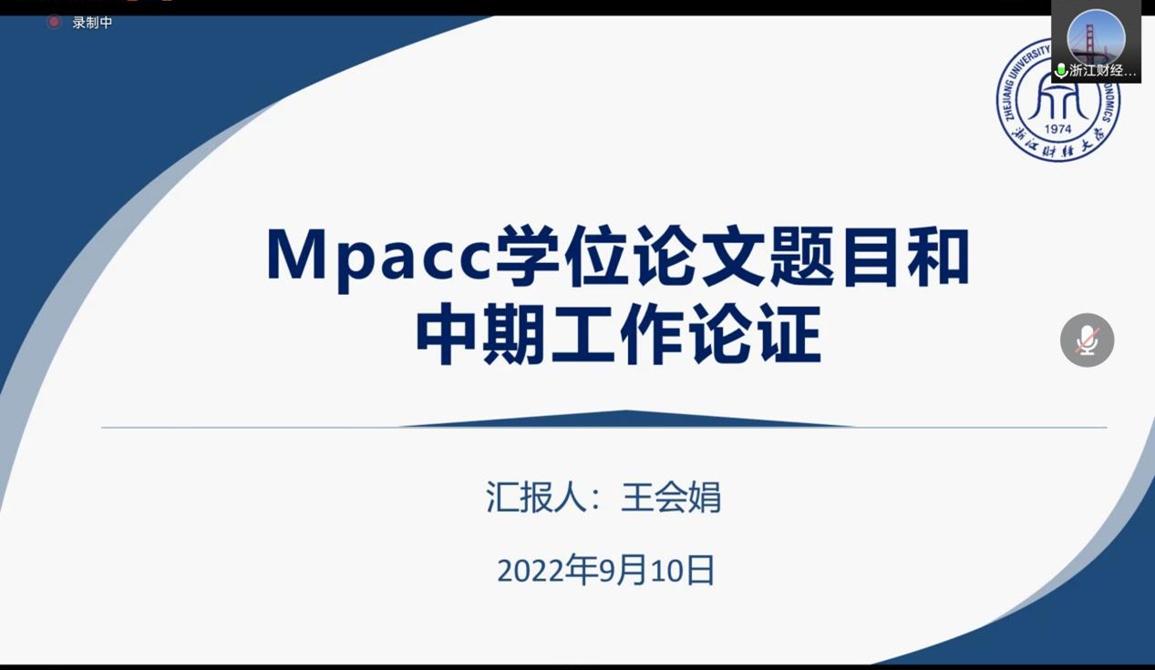 王会娟教授首先就教指委论文类型进行介绍,浙江财经大学MPAcc论文多为案例分析型,而我们学校多为专题研究型。同时,指出我们学校论文题目可能存在的问题是比较传统,缺少创新、题目相似度高,研究方向集中等。其次,王会娟也对浙江财经大学MPAcc论文开题、盲审、答辩的流程进行了讲解,其流程中为学生预留了多次修改论文、提高论文质量的机会,值得我们学习。最后,介绍了浙江财经大学开办的“社会导师走进课堂”活动,为学生们近距离学习和实践提供了机会,也为论文写作提供参考。