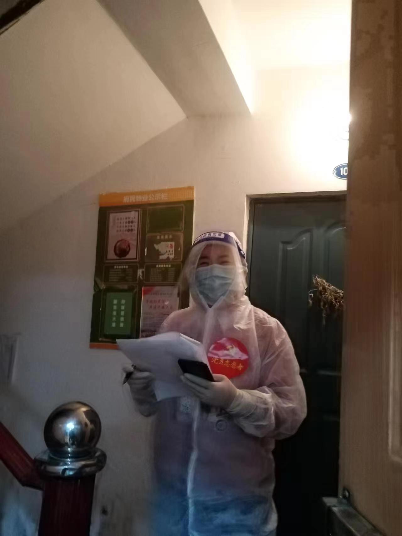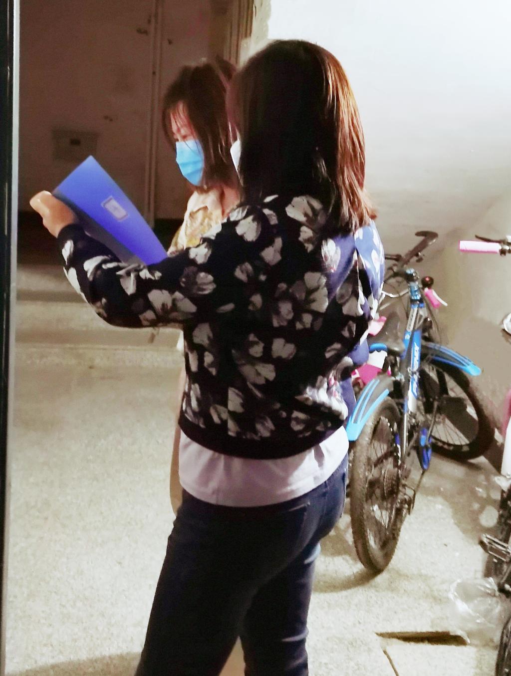 会计系党支部书记生艳梅临近深夜10点,还在小区内挨家挨户派送蔬菜包。