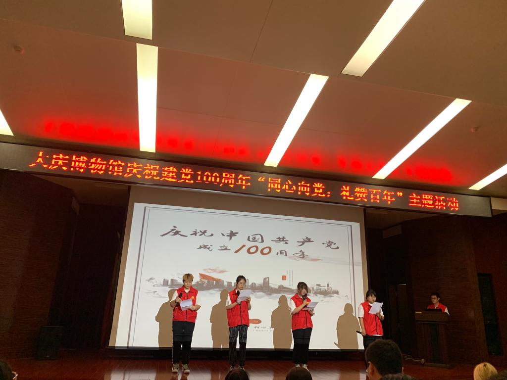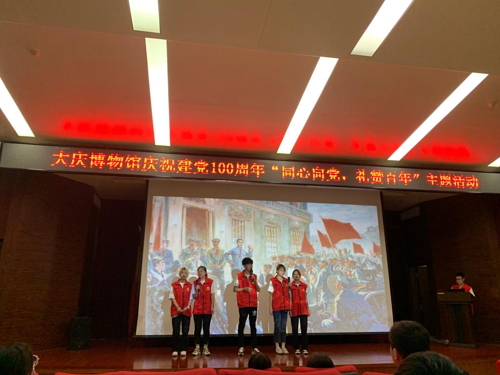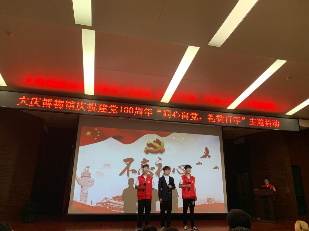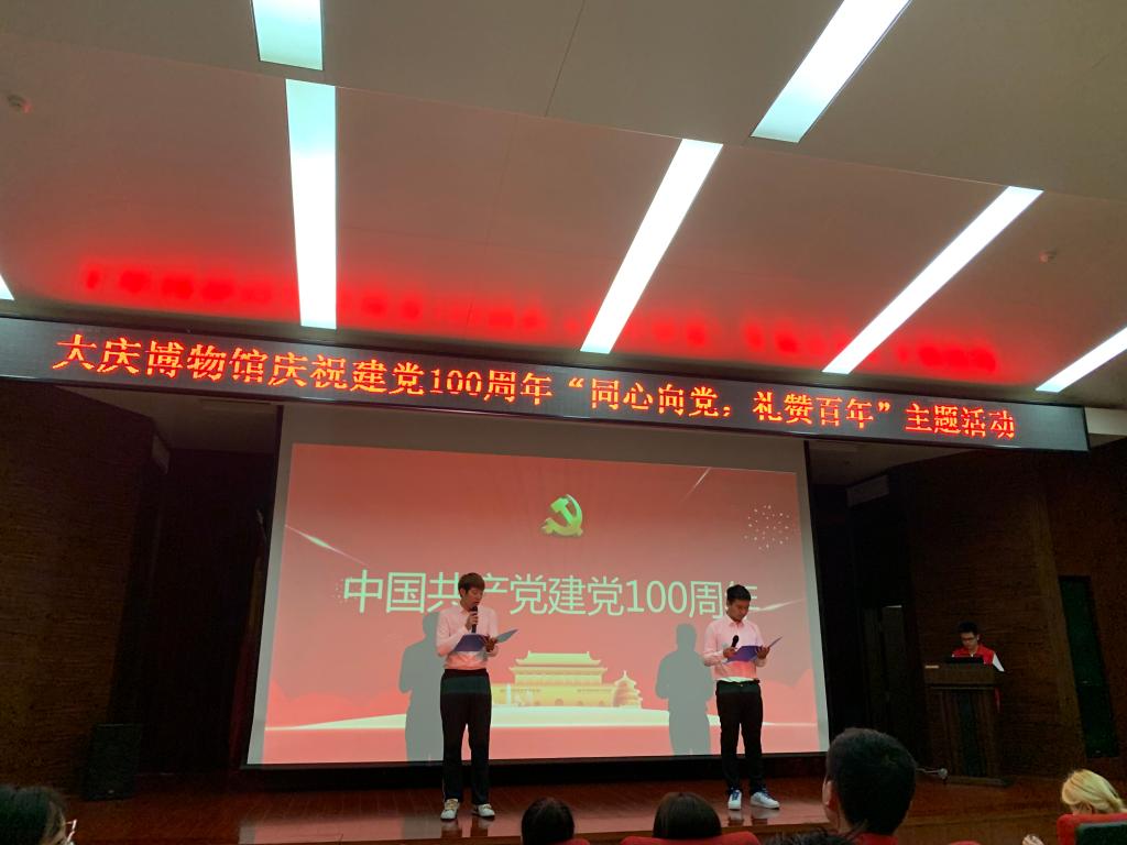 为热烈庆祝中国共产党成立100周年,颂扬党的丰功伟绩,唱响新时代主旋律,bv伟德国际1946旅游管理专业2020级师生,联合旅游管理专业认识实习实训基地——大庆市博物馆,于2021年7月1日上午九点在大庆市博物馆三楼多功能报告厅成功举办了庆祝建党100周年“同心向党,礼赞百年”文艺演出。