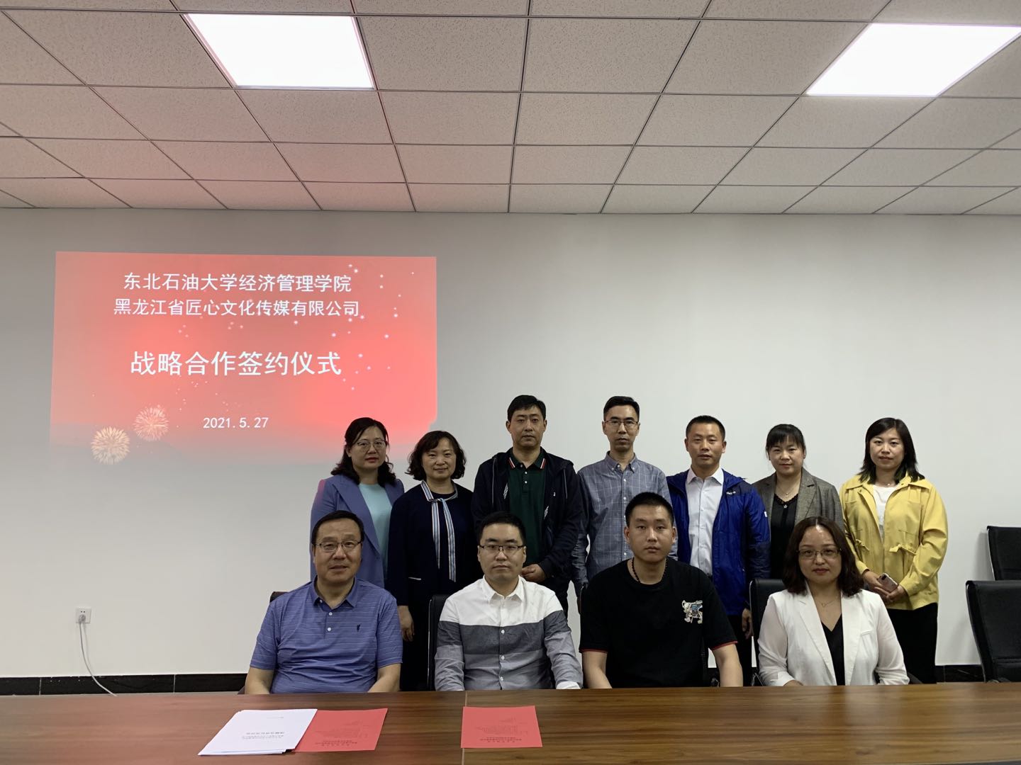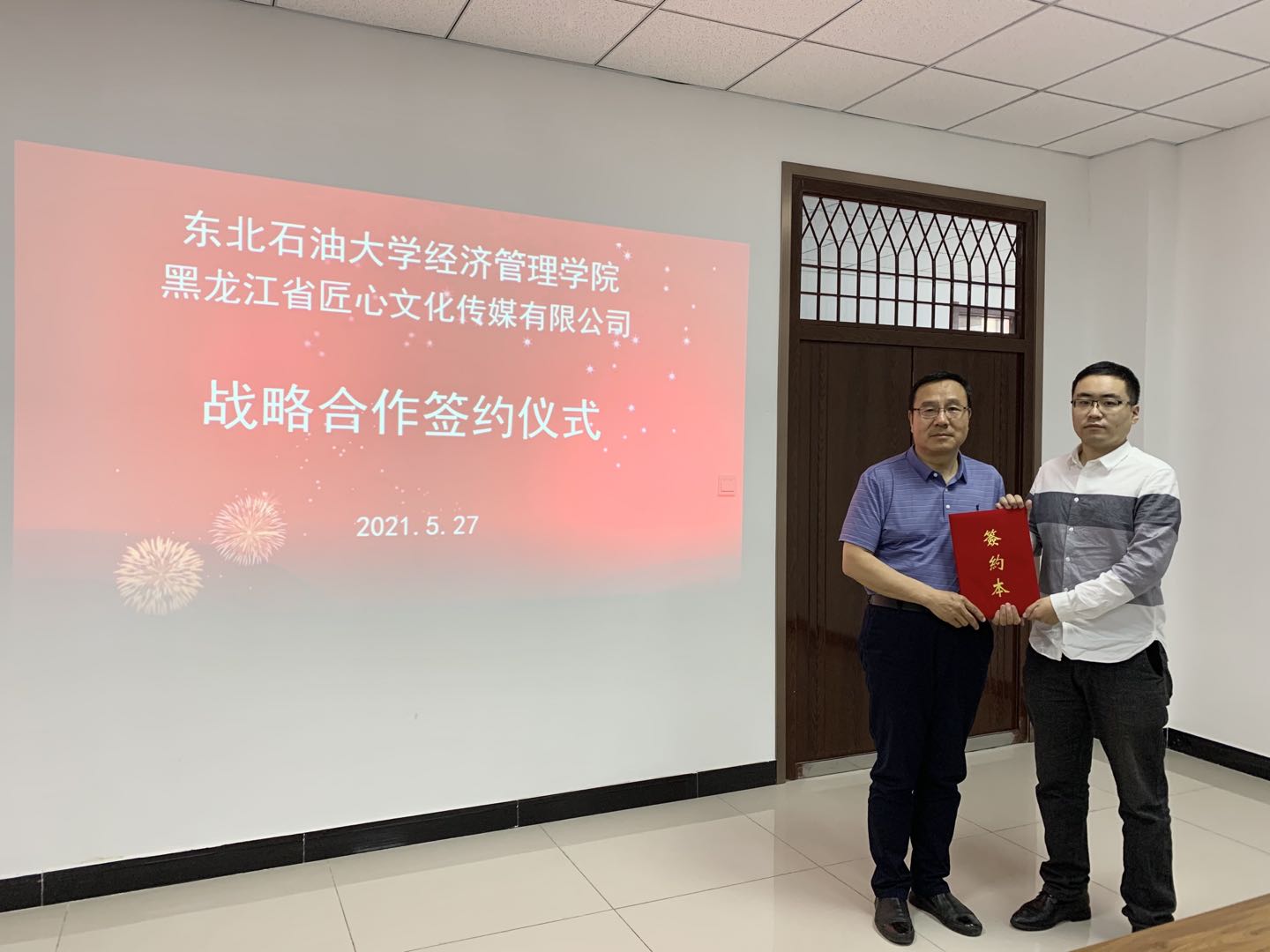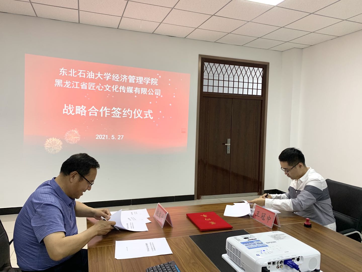 5月27日下午4点,bv伟德国际1946在415会议室举办与黑龙江省匠心文化传媒有限公司战略合作签约仪式。院长赵俊平、副院长王艳秋、黑龙江省匠心文化传媒有限公司总经理王冠中、总经理助理王晓宇、bv伟德国际1946各系主任、副主任出席签约仪式。
