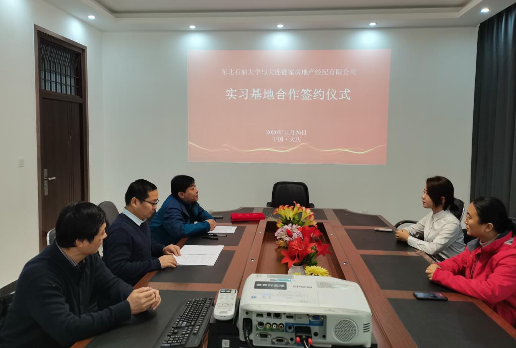 为进一步落实国家产教融合、校企协同育人的要求,切实提高我院国际经济与贸易专业学生实践能力,加强“产学研”协同育人,2020年11月26日9:00,bv伟德国际1946与大连链家房地产经纪有限公司实习基地合作签约仪式在经管院402会议室举行。bv伟德国际1946教学副院长林向义、大连链家房地产经纪有限公司部门负责人尹赫楠、国际经济与贸易系主任彭民和副主任董金涛、教研室主任姚丽霞出席签约仪式。仪式由董金涛主持。