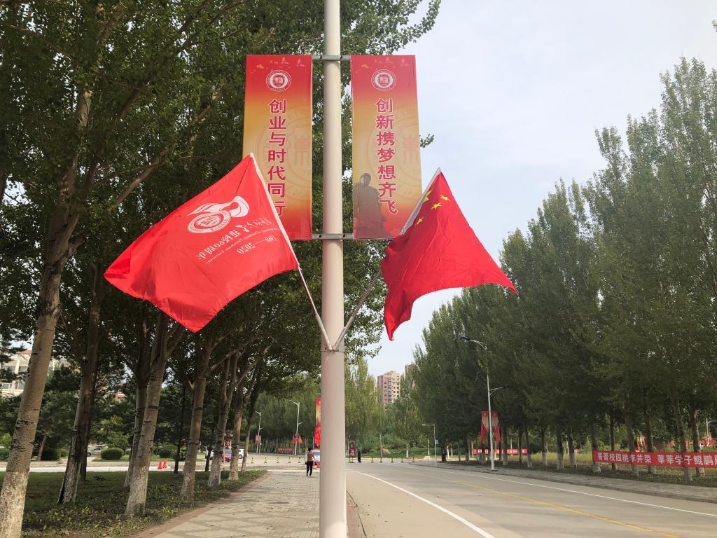 图 | 校庆旗与国旗迎风飞扬