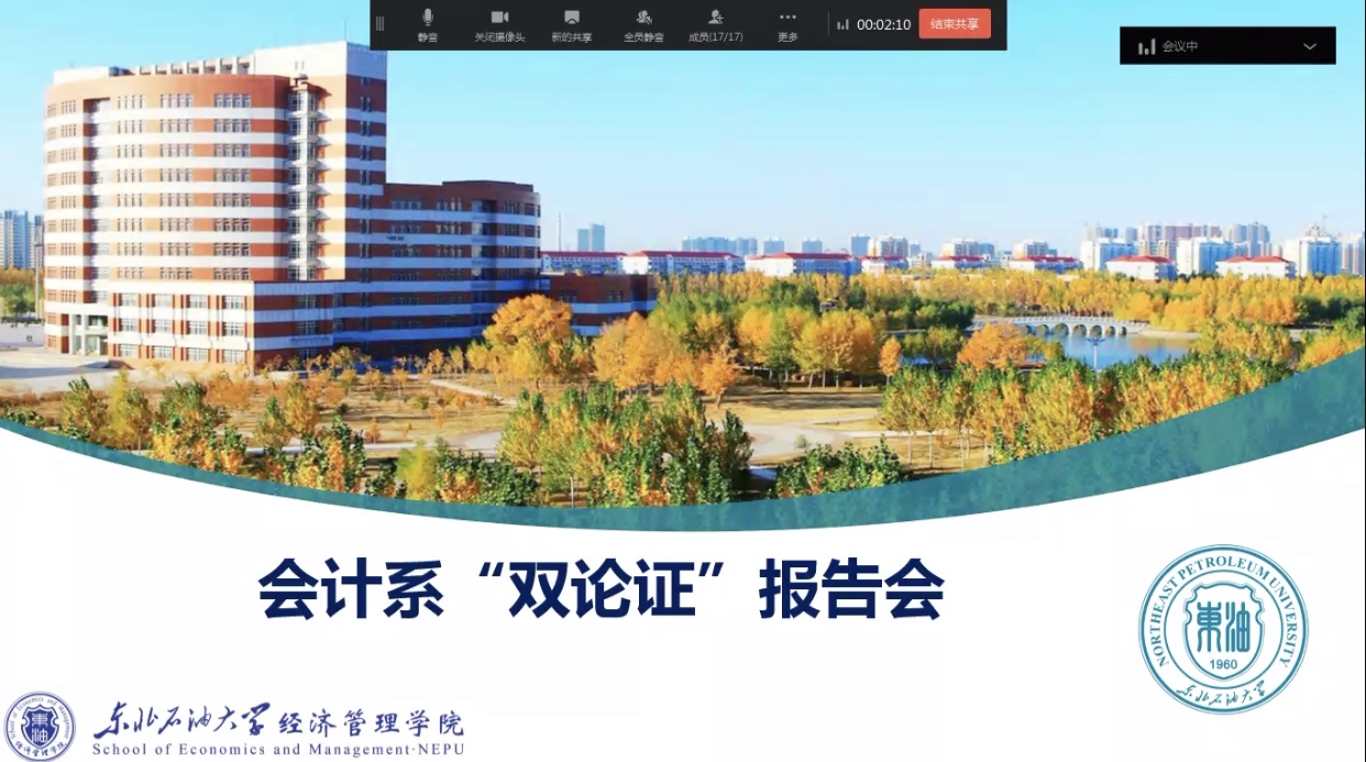 为全面贯彻全国全省教育大会精神,落实校党代会、本科教育大会精神,依据《普通高等学校本科专业类教学质量国家标准》《黑龙江省教育厅关于开展地方属普通高校人才培养战略定位论证及专业结构优化调整论证工作的通知》《bv伟德国际1946本科教育全面振兴行动计划》等文件精神,紧密围绕能源行业发展、龙江全面振兴全方位振兴和大庆资源型城市转型,以“人才培养战略定位”为切入点,持续深化我院人才培养供给侧结构性改革,科学规划人才培养工作,提升人才培养质量和就业质量,更好地服务“五大安全”战略和“六个强省”建设需要,我院各系利用假期开展了人才培养战略定位及专业结构优化调整论证会。2020年8月16日上午9:00,bv伟德国际1946通过钉钉平台在线视频会议的形式召开了“双论证”内部交流会,bv伟德国际1946全体教师参加了本次会议。本次会议由经管院教学副院长林向义主持。