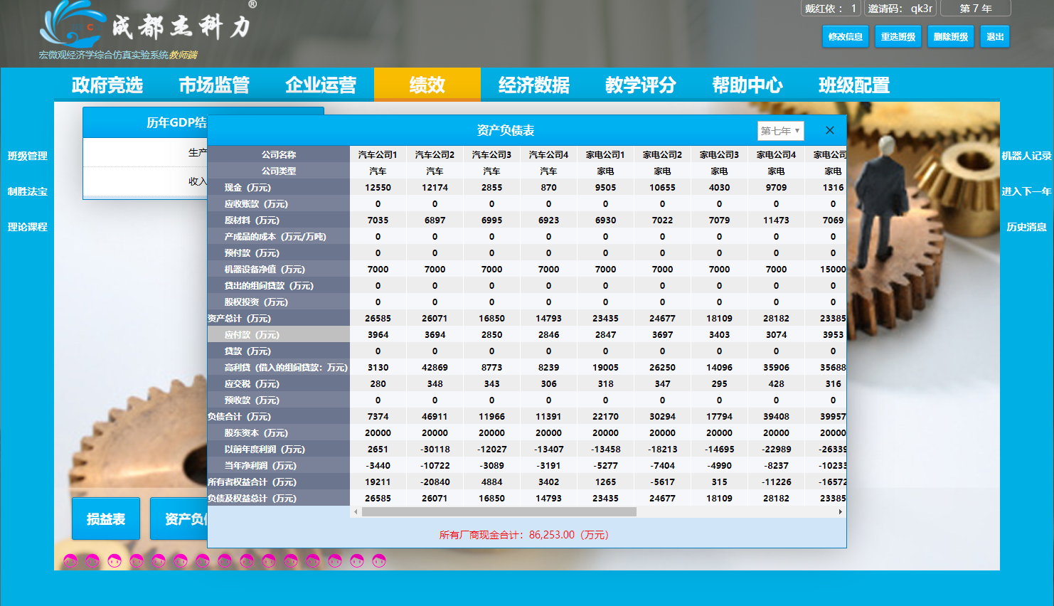 2018级经济与贸易系的“云实习”是通过成都杰科力公司开发的经济学模拟沙盘综合仿真软件来完成的。这个仿真软件主要通过筹码推演和角色扮演的方式来模拟宏观和微观经济经营过程,从而营造出真实的经济环境。通过角色扮演可以让同学们体会到现实生活中的厂商、政府、消费者之间的经济行为。在模拟经营的过程中汽车和家电厂商向钢铁厂商采购原材料,购买生产线等进行生产运营,政府则根据CPI、PPI、GDP等数据采取相应的财政政策和货币政策对经济进行调控。本次“云实习”相比以往的线下实习更富操作性和体验性,通过情景模拟、角色实践的方法让同学们通过游戏来体验微观经济的运行与宏观经济调控,从而让每名同学都有针对性的收获。