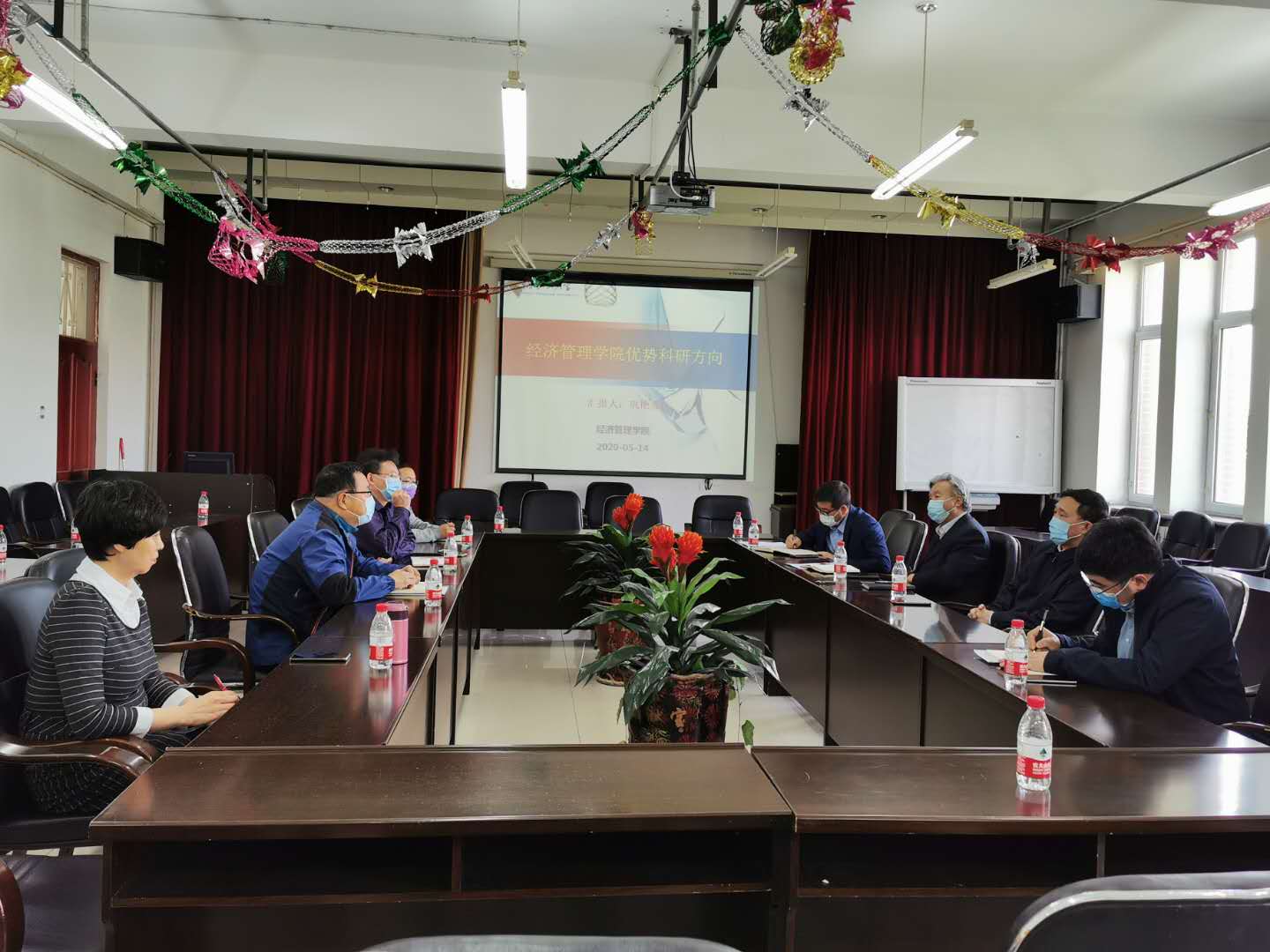 5月14日下午2:30,校长蒋明虎,科研处处长王明吉、副处长李玮和孙永河一行到bv伟德国际1946走访调研,并听取bv伟德国际1946优势科研方向汇报。bv伟德国际1946党委书记邵强、院长赵俊平、科研副院长巩艳芬、教学副院长林向义、科研方向带头人和各系主任出席了会议,会议由王明吉主持。