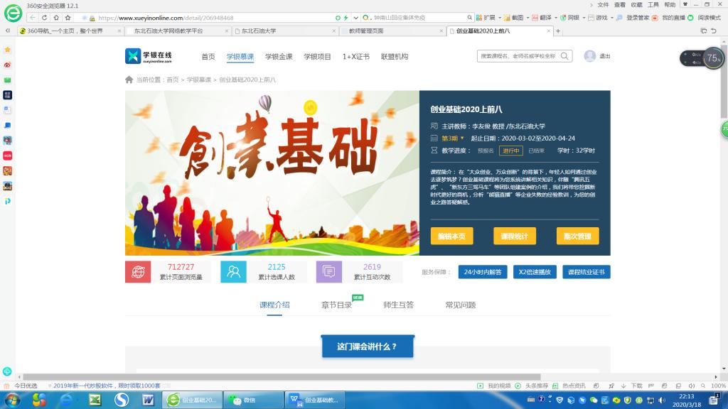 2020年春季,bv伟德国际1946在《创业基础》的网络教学工作主要做了以下工作: