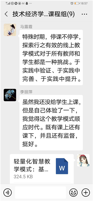 bv伟德国际1946工程管理系技术经济学概论课程组在云课堂的准备中,探索出基于“SPOC+慕课堂+钉钉直播”的共鸣式智慧型对分课堂教学模式。这种轻量化智慧教学模式,适合疫情期间,软硬件均有不足的现实条件下教师迅速开展智慧教学,去繁从简,仅用电脑、手机、PPT师生常用三件套,轻松打通课前、课中、课后三个教学环节,中国大学MOOC平台与钉钉平台交互使用,“共鸣点”、“智慧点”、“对分点”交互出现,真正实现共鸣式智慧型对分课堂“云教学”。