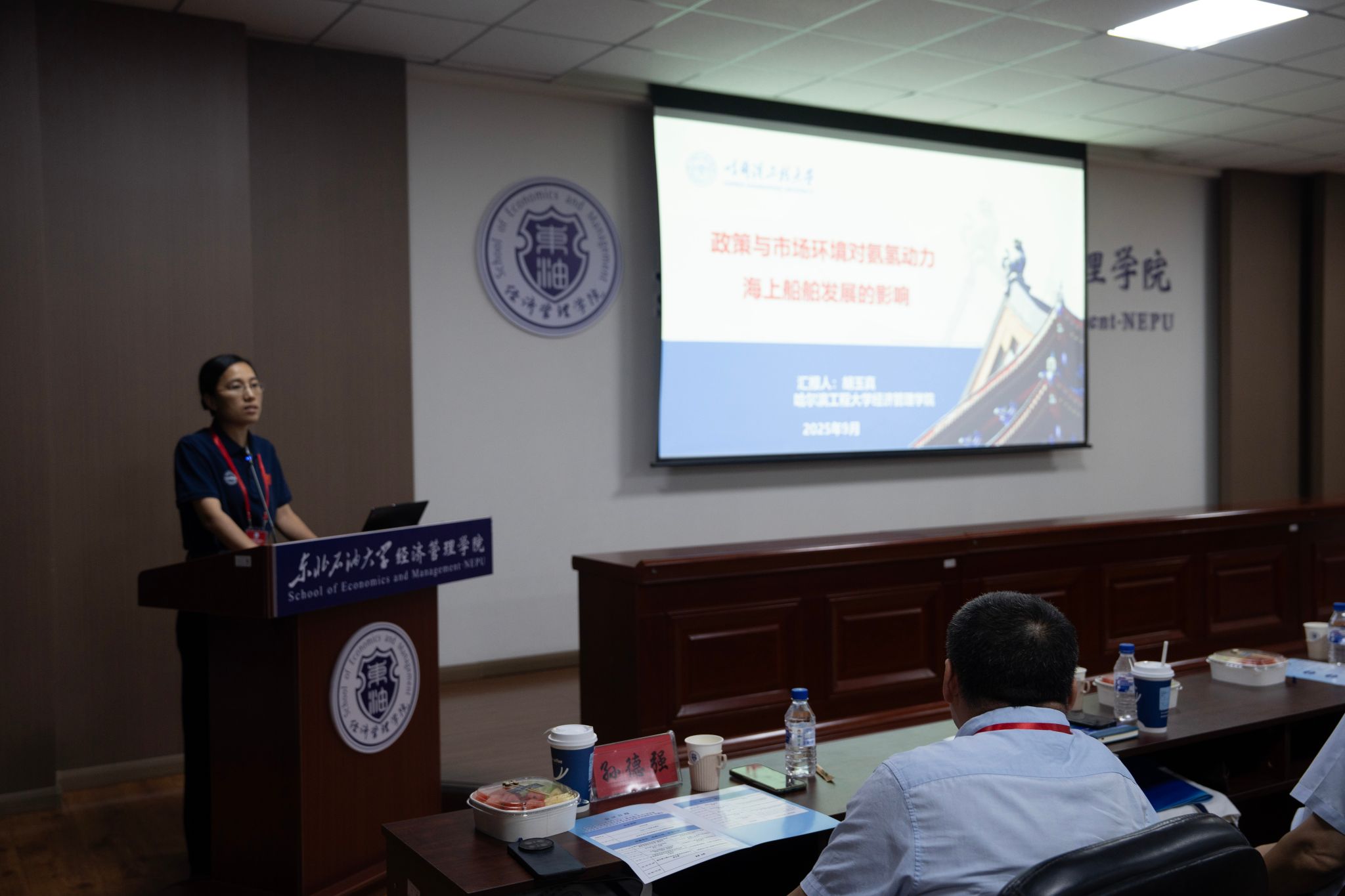 论坛特邀报告环节以“战略引领・能源向新”为主题,多位行业权威专家带来重磅分享。中国石油集团经济技术研究院国家高端智库首席经济学家戴家权,聚焦《特朗普政府能源政策对全球油气供需格局的影响分析》,深入剖析国际能源政策对全球市场的牵动作用;哈尔滨工业大学商学院院长马涛围绕《“十五五”时期人工智能引领消费的趋势与特点》,阐述人工智能技术在消费领域的应用前景及对能源产业的间接影响;中国石油勘探开发研究院高级工程师曲德斌针对《我国油气上游业务形势与提质增效发展战略》,提出推动国内油气上游业务高质量发展的具体路径;中国科学院科技战略咨询研究院先进能源战略与政策研究中心执行主任孙德强解读《先进能源的概念、内涵及发展路径》,为未来能源产业转型指明方向;哈尔滨工程大学bv伟德国际1946副院长胡玉真则以《氨氢动力海上船舶发展战略研究》为题,探索新能源在海洋经济领域的创新应用。专家们的分享高屋建瓴,为参会者带来能源领域前沿视野,也进一步凸显了主办方搭建高水平学术交流平台的价值。