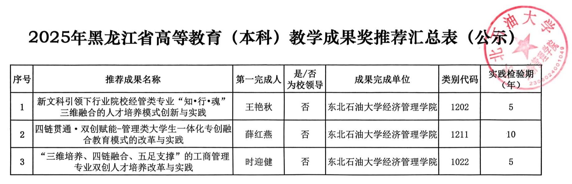2025年黑龙江省高等教育 (本科)教学成果奖推荐汇总表 (公示)