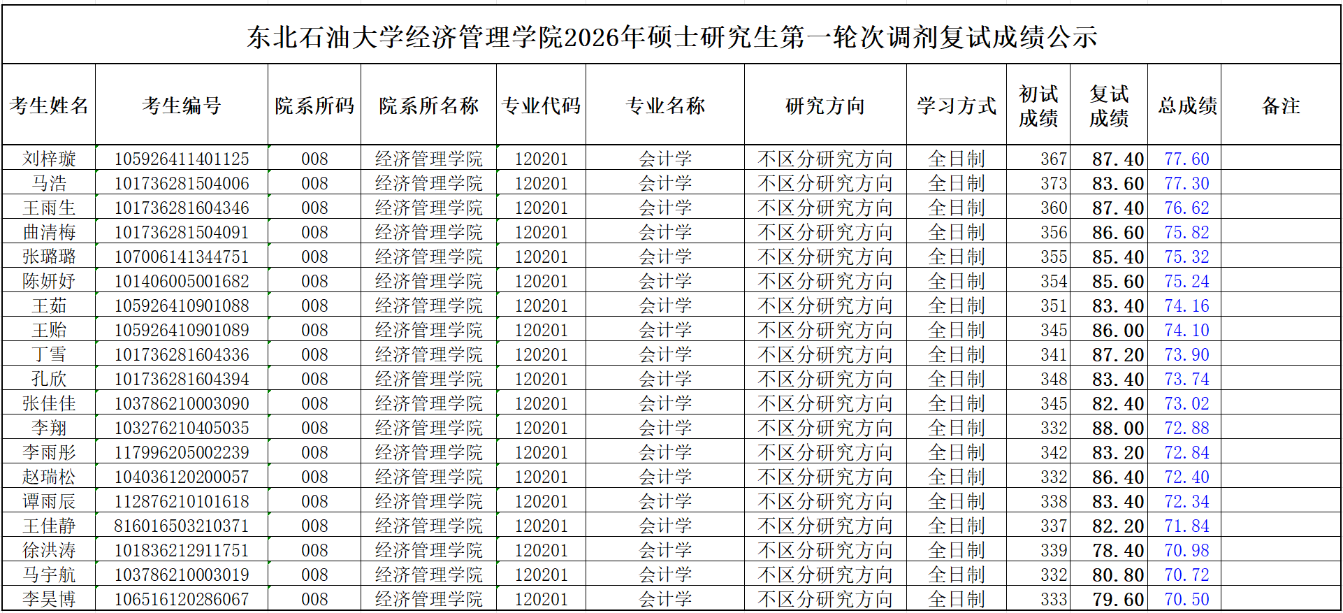 北石油大学bv伟德国际19462026年硕士研究生第一轮次调剂复试成绩公示