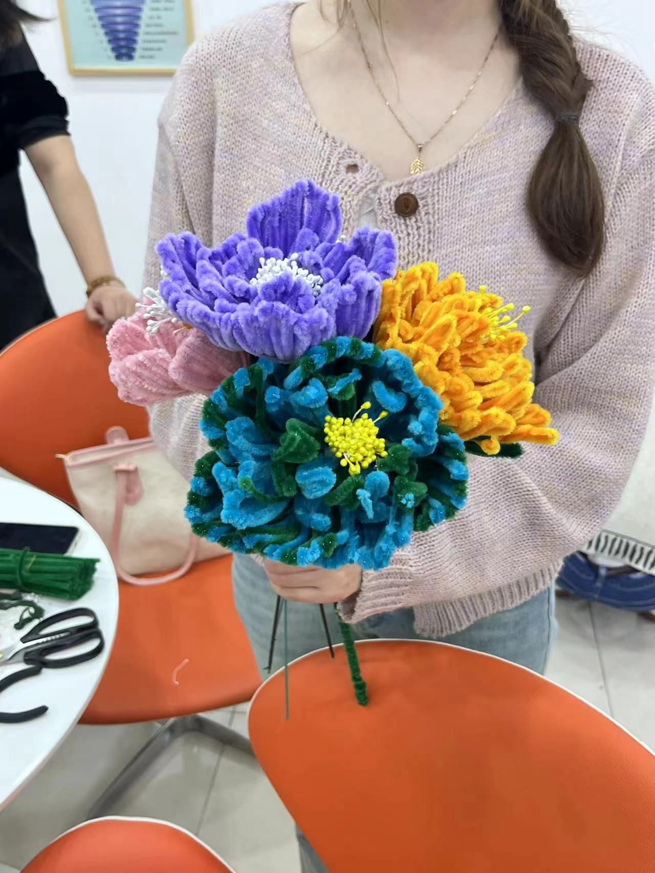 活动伊始,主持人介绍了谷雨节气的由来并播放了视频:谷雨,是春季的最后一个节气,意味着雨水滋润大地,百谷生长茂盛。视频中,春雨绵绵,万物复苏,一幅幅生动的画面使人仿佛置身于绿意盎然的田野间。通过聆听介绍和观看视频,师生们了解了谷雨节气的气候特点、可以从事的农事活动以及与之相关的传统文化习俗,共同领略了中华传统节气的独特魅力。随后,由师生共同手工制作鲜花,大家热情高涨,纷纷动手参与设计与制作。剪裁、拼接、塑形,每一个步骤都充满了乐趣和挑战,师生们用心感受着每一片花瓣、绿叶的生命力。在大家的巧手中,一朵朵精美的手工鲜花绚丽绽放,它们不仅代表了师生对美好生活的向往,更是他们用行动对中华优秀传统文化的传承与弘扬。师生们纷纷表示收获颇丰,活动取得了圆满成功。