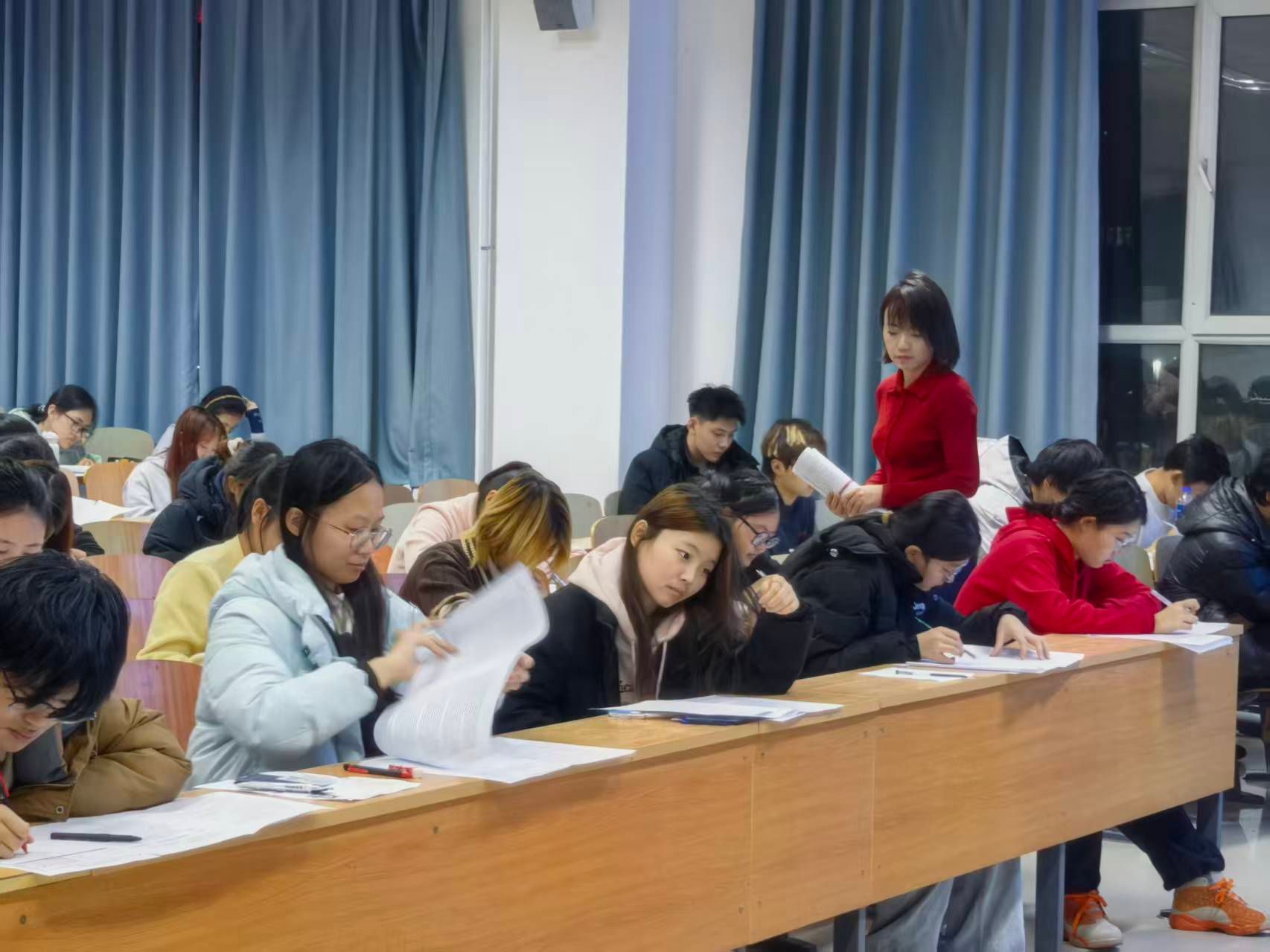 考试过程中,同学们全神贯注,沉着应答,监考人员有序巡视,考场秩序井然,展现出学院学子良好的精神风貌与自律意识。