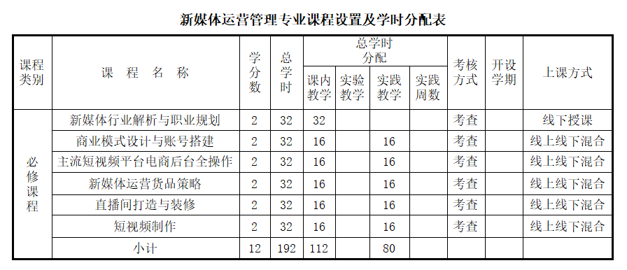 顺应互联网和移动互联网时代对新媒体运营人才的需求,培养能够在各行业和领域从事新媒体文案编辑、新媒体策划、新媒体营销及直播运营等工作,具有良好的学习能力、专业能力、实践创新能力以及良好的沟通协作能力,能够不断自我发展,具有较强的就业能力和可持续发展能力高素质应用复合型人才。